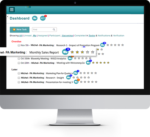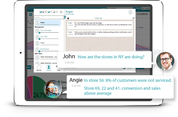 Inter-organization live chatting, Tasking, Notifications and alerts, together with data to and from the sales floor improve transparency and alignment at all operational levels